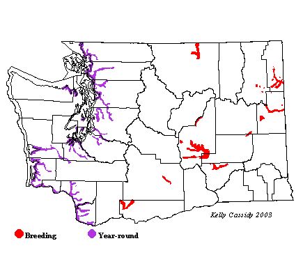The American Bittern can be found year round in the mild coastal and western Washington climate, and is primarily a summer breeder in the eastern portion of the state. In appropriate habitat at low elevations, American Bitterns are common, although difficult to spot, year round in the west, and from April to September in eastern Washington. Less common the rest of the year in eastern Washington, they are mainly found in large marshes and along major waterways with dense emergent vegetation.
