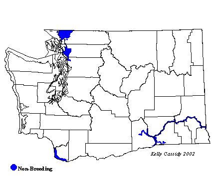 The Harris's Sparrow is a rare but regular wintering bird in Washington. Although they are more common on the Canadian side, they have shown up on about half of the Christmas Bird Counts in the Okanogan Valley and about 20% of the counts in Spokane. About 70% of Bellingham's Christmas Bird Counts have found a few Harris's Sparrows. Throughout the rest of western Washington, they are rare, with a few sightings reported each winter, from October through early May.