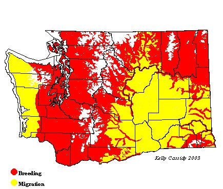 Western Wood-Pewees are most common in eastern Washington at lower elevations, within the forested zone. They can be found in western Washington, especially in some of the dry areas in the San Juan Islands (especially Lopez Island) and on the northeastern Olympic Peninsula. Look for them in clear-cuts. They are also common along the coast, at Grays Harbor and Willapa Bay.